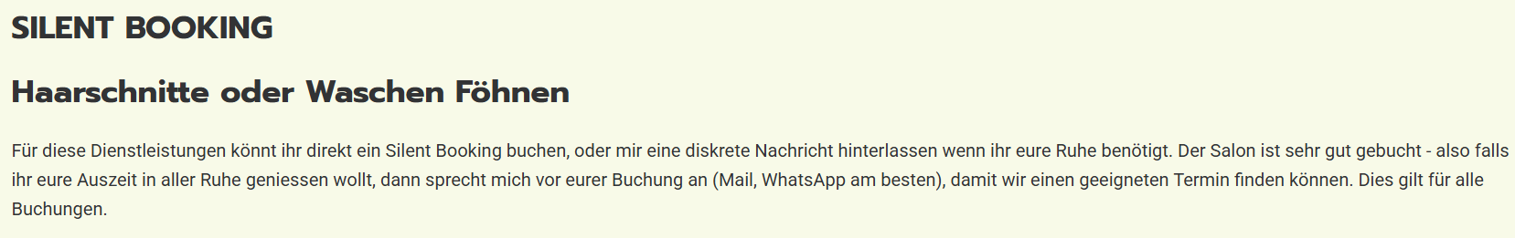 Pro tyto služby si můžete rovnou zarezervovat Silent Booking, nebo mi zanechte diskrétní zprávu, pokud potřebujete klid. V salonu bývá plno – tedy pokud si chcete svůj odpočinek užít zcela v klidu, oslovte mě přes e-mail nebo WhatsApp ještě před rezervací, abychom našli vhodný termín. To platí pro všechny rezervace.